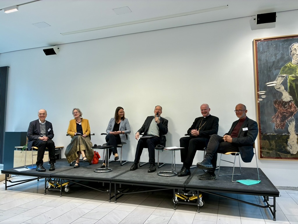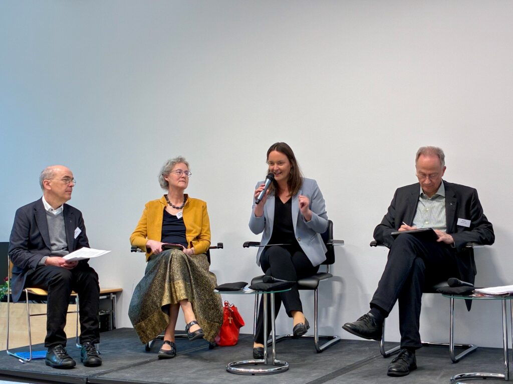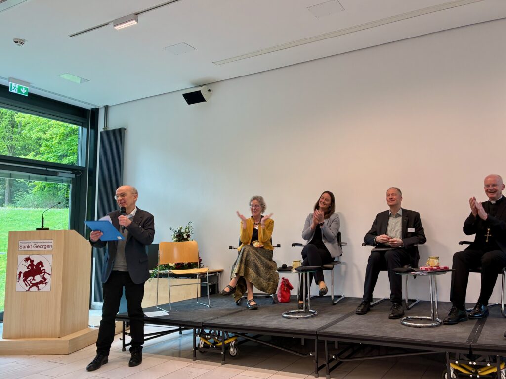 Am Freitagabend stand – nach der Begrüßung durch den neuen (P. Klaus Vechtel SJ) und den scheidenden Schriftleiter (Dr. Christoph Benke) die Frage nach dem „gelingenden Leben“ im Mittelpunkt eines Podiumsgespräches, an dem die renommierte Autorin Nora Bossong („Die Geschmeidigen“, „Reichskanzlerplatz“), die Frankfurter Stadträtin und Dezernentin für Kultur und Wissenschaft Dr. Ina Hartwig und der Delegat für Zeitschriften und Exerzitien P. Stefan Kiechle SJ teilnahmen. P. Jörg Nies SJ moderierte das Gespräch, in dem vor allen Dingen der prozessuale Charakter des Lebens und seines möglichen Gelingens im Vordergrund stand wie auch Vorsicht eines Urteils, über das, was gelingendes Leben bedeuten kann.