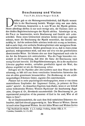 9. Abhandlungen | Alois Mager Beschauung und Vision [38−44]