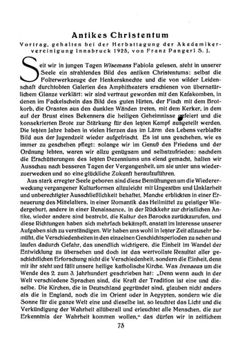 9. Abhandlungen | Franz Pangerl Antikes Christentum. Vortrag, gehalten bei der Herbsttagung der Akademikervereinigung Innsbruck 1925 [Teil I] [73−83]