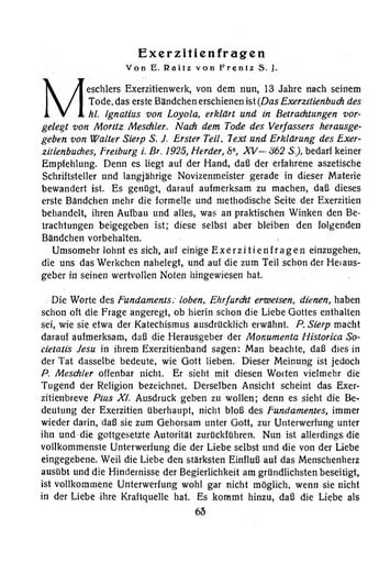 pdf Abhandlungen | E. Raitz von Frentz Exerzitienfragen [63−69]