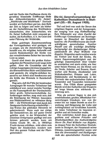 9. Aus dem kirchlichen Leben | Heinrich Bleienstein II. Die 64. Generalversammlung der Katholiken Deutschlands in Stuttgart (23.−25. August 1925) [87−89]
