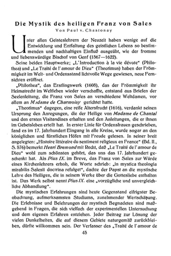 9. Abhandlungen | Paul v. Chastonay Die Mystik des heiligen Franz von Sales [45−53]