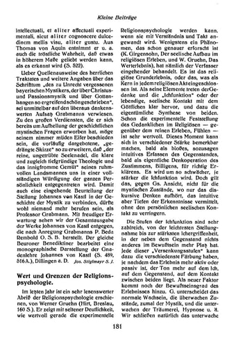 9. Kleine Beiträge | E. Raitz von Frentz Wert und Grenzen der Religionspsychologie [181−183]