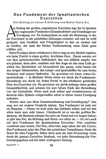 pdf Abhandlungen | Walter Sierp Das Fundament der Ignatianischen Exerzitien. Ein Beitrag zu seiner Erklärung [93−112]