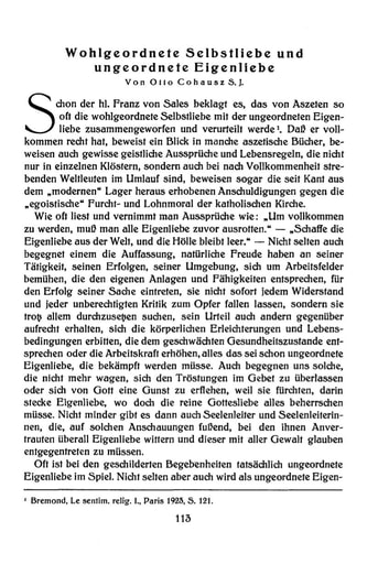 pdf Abhandlungen | Otto Cohausz Wohlgeordnete Selbstliebe und ungeordnete Eigenliebe [113−128]
