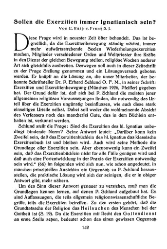 9. Abhandlungen | E. Raitz v. Frentz Sollen die Exerzitien immer Ignatianisch sein? [142−154]