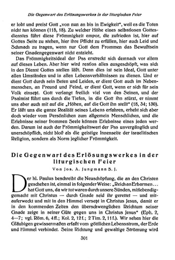 pdf Abhandlungen | Jos. A. Jungmann Die Gegenwart des Erlösungswerkes in der liturgischen Feier [301−316]