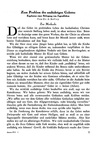9. Abhandlungen | A. Bolley Zum Problem des andächtigen Gebetes. Ergebnisse einer Befragung von Jugendlichen [1−29]