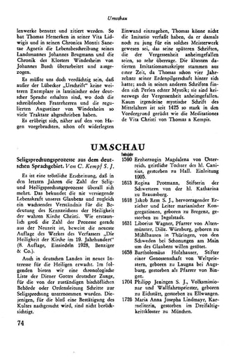 pdf Umschau | C. Kempf Seligsprechungsprozesse aus dem deutschen Sprachgebiet [74−76]