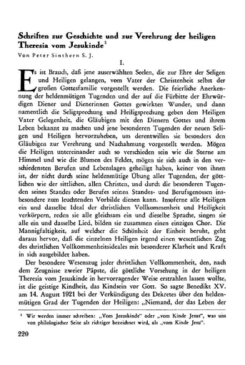 pdf Abhandlungen | Peter Sinthern Schriften zur Geschichte und zur Verehrung der heiligen Theresia vom Jesukinde [220−252]