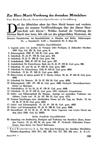 pdf Abhandlungen | Medard Barth Zur Herz-Mariä-Verehrung des deutschen Mittelalters [193−219]