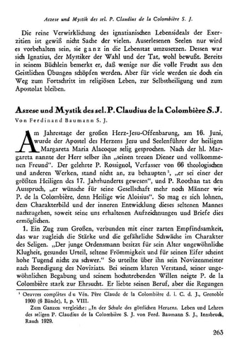 9. Abhandlungen | Ferdinand Baumann Aszese und Mystik des sel. P. Claudius de la Colombière S.J. [263−272]