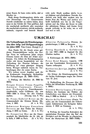9. Umschau | Const. Kempf Die Verhandlungen der Ritenkongregation über Selig- und Heiligsprechungen im Jahre 1929 [181−183]