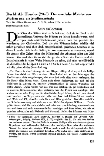9. Abhandlungen | Basilius Hermann Der hl. Abt Theodor (†826). Der aszetische Meister von Studion und die Studitenmönche [Teil II] [121−147]