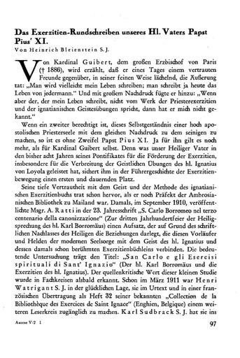 9. Abhandlungen | Heinrich Bleienstein Das Exerzitien-Rundschreiben unseres Hl. Vaters Papst Pius’ XI. [97−120] Deutsche Übersetzung der Enzyklika „Mens Nostra“ vom 20. Dez. 1929 [103−120]