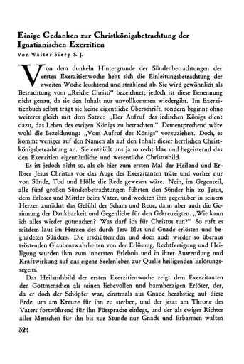 pdf Abhandlungen | Walter Sierp Einige Gedanken zur Christkönigsbetrachtung der Ignatianischen Exerzitien [324−334]