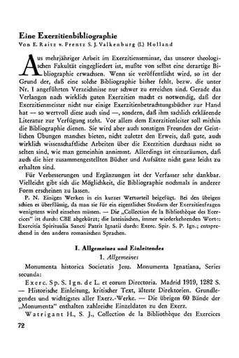 9. Abhandlungen | E. Raitz v. Frentz Eine Exerzitienbibliographie [72−84]