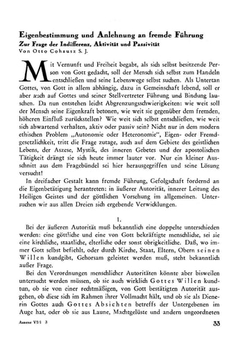 9. Abhandlungen | Otto Cohausz Eigenbestimmung und Anlehnung an fremde Führung. Zur Frage der Indifferenz, Aktivität und Passivität [33−46]