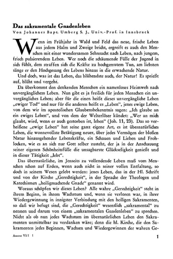 9. Abhandlungen | Johannes Bapt. Umberg Das sakramentale Gnadenleben [1−15]