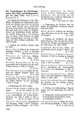 9. Kleine Beiträge | Const. Kempf Die Verhandlungen der Ritenkongregation über Selig- und Heiligsprechungen im Jahre 1932 [174−176]