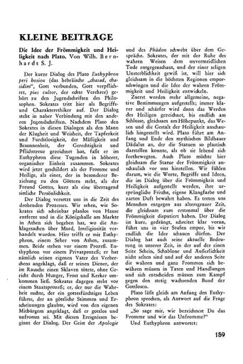 pdf Kleine Beiträge | Wilh. Bernhardt Die Idee der Frömmigkeit und Heiligkeit nach Plato [159−162]