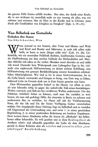 pdf Abhandlungen | Oda Schneider Vom Selbsthaß aus Gottesliebe. Gedanken über Aszese [229−242]