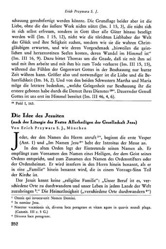 9. Abhandlungen | Erich Przywara Die Idee des Jesuiten (nach der Liturgie des Festes Allerheiligen der Gesellschaft Jesu) [252−260]