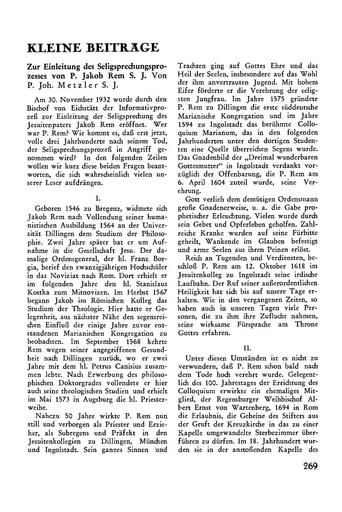 pdf Kleine Beiträge | Joh. Metzler Zur Einleitung des Seligsprechungsprozesses von P. Jakob Rem S.J. [269−270]