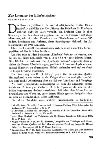 9. Abhandlungen | Oda Schneider Zur Literatur des Elisabethjahres [309−322]