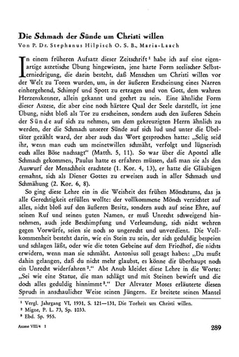 pdf Abhandlungen | Stephanus Hilpisch Die Schmach der Sünde um Christi willen [289−299]