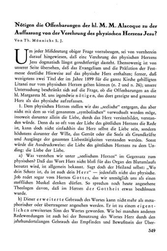 9. Abhandlungen | Th. Mönnichs Nötigen die Offenbarungen der hl. M.M. Alacoque zu der Auffassung von der Verehrung des physischen Herzens Jesu? [349−356]
