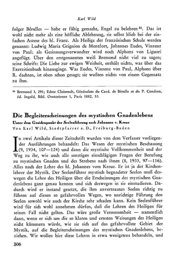 9. Abhandlungen | Karl Wild Die Begleiterscheinungen des mystischen Gnadenlebens. Unter dem Gesichtspunkt der Seelenführung nach Johannes v. Kreuz [306−323]