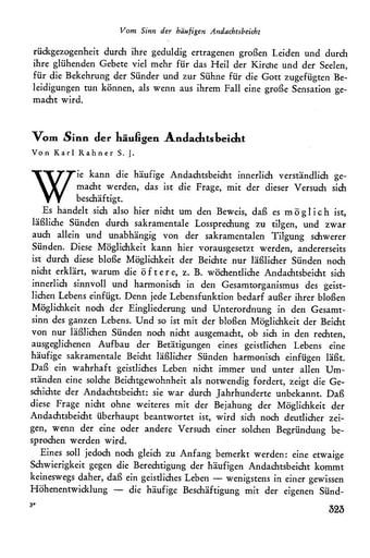 9. Abhandlungen | Karl Rahner Vom Sinn der häufigen Andachtsbeicht [323−336]