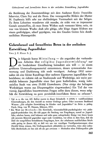 9. Abhandlungen | J.P. Haas Gebetsformel und formelfreies Beten in der seelischen Entwicklung Jugendlicher [363−367]
