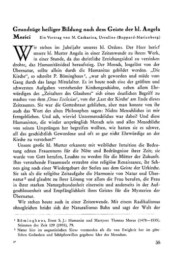 9. Abhandlungen | M. Catharina, Ursuline Grundzüge heiliger Bildung nach dem Geiste der hl. Angela Merici [35−52]
