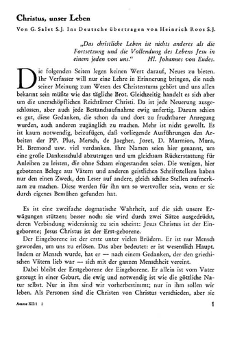 pdf Abhandlungen | G. Salet Christus, unser Leben. Ins Deutsche übertragen von Heinrich Roos [1−21]