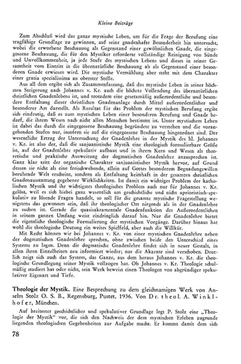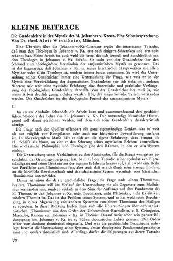 9. Kleine Beiträge | A. Winklhofer Die Gnadenlehre in der Mystik des hl. Johannes v. Kreuz. Eine Selbstbesprechung [72−78]