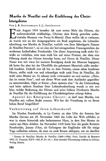 pdf Abhandlungen | J.B. Kettenmeyer Martha de Noaillat und die Einführung des Christkönigsfestes [184−201]