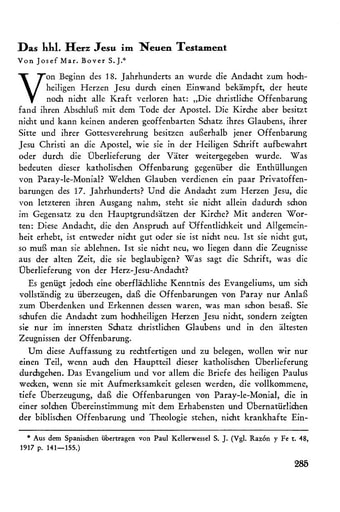 9. Abhandlungen | Josef Mar. Bover Das hhl. Herz Jesu im Neuen Testament [285−301]