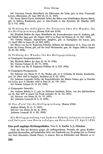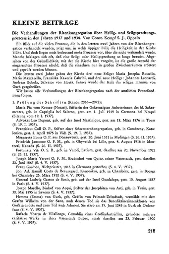 9. Kleine Beiträge | Const. Kempf Die Verhandlungen der Ritenkongregation über Heilig- und Seligsprechungsprozesse in den Jahren 1937 und 1938 [215−220]
