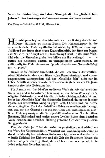 9. Abhandlungen | Cornelius Schröder Von der Bedeutung und dem Sinngehalt des „Geistlichen Jahres“. Eine Einführung in das Lebenswerk Annette von Droste-Hülshoffs [161−173]