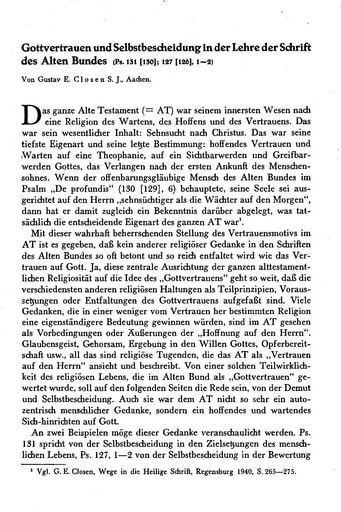 9. Abhandlungen | Gustav E. Closen Gottvertrauen und Selbstbescheidung in der Lehre der Schrift des Alten Bundes (Ps 131 [130]; 127 [126], 1−2) [187−197]