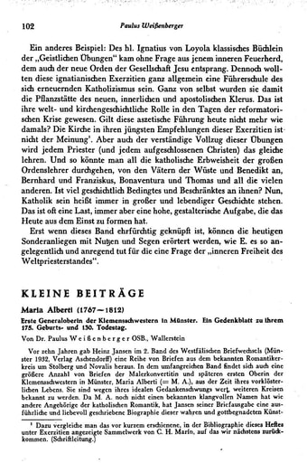 9. Kleine Beiträge | Paulus Weißenberger Maria Alberti (1767−1812). Erste Generaloberin der Klemensschwestern in Münster. Ein Gedenkblatt zu ihrem 175. Geburts- und 130. Todestag [102−108]