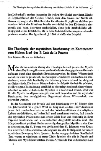 9. Abhandlungen | Johannes Beumer Die Theologie der mystischen Beschauung im Kommentar zum Hohen Lied des P. Luis de la Puente [77−90]